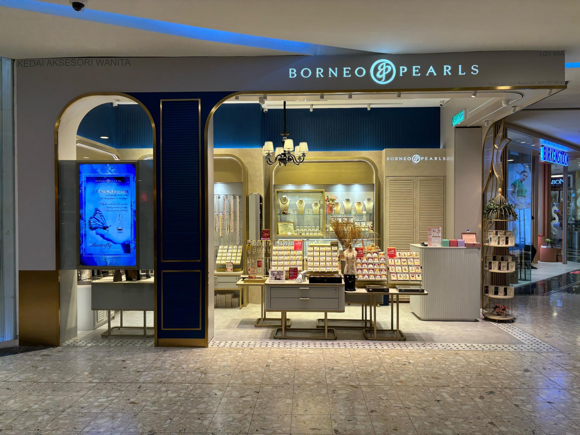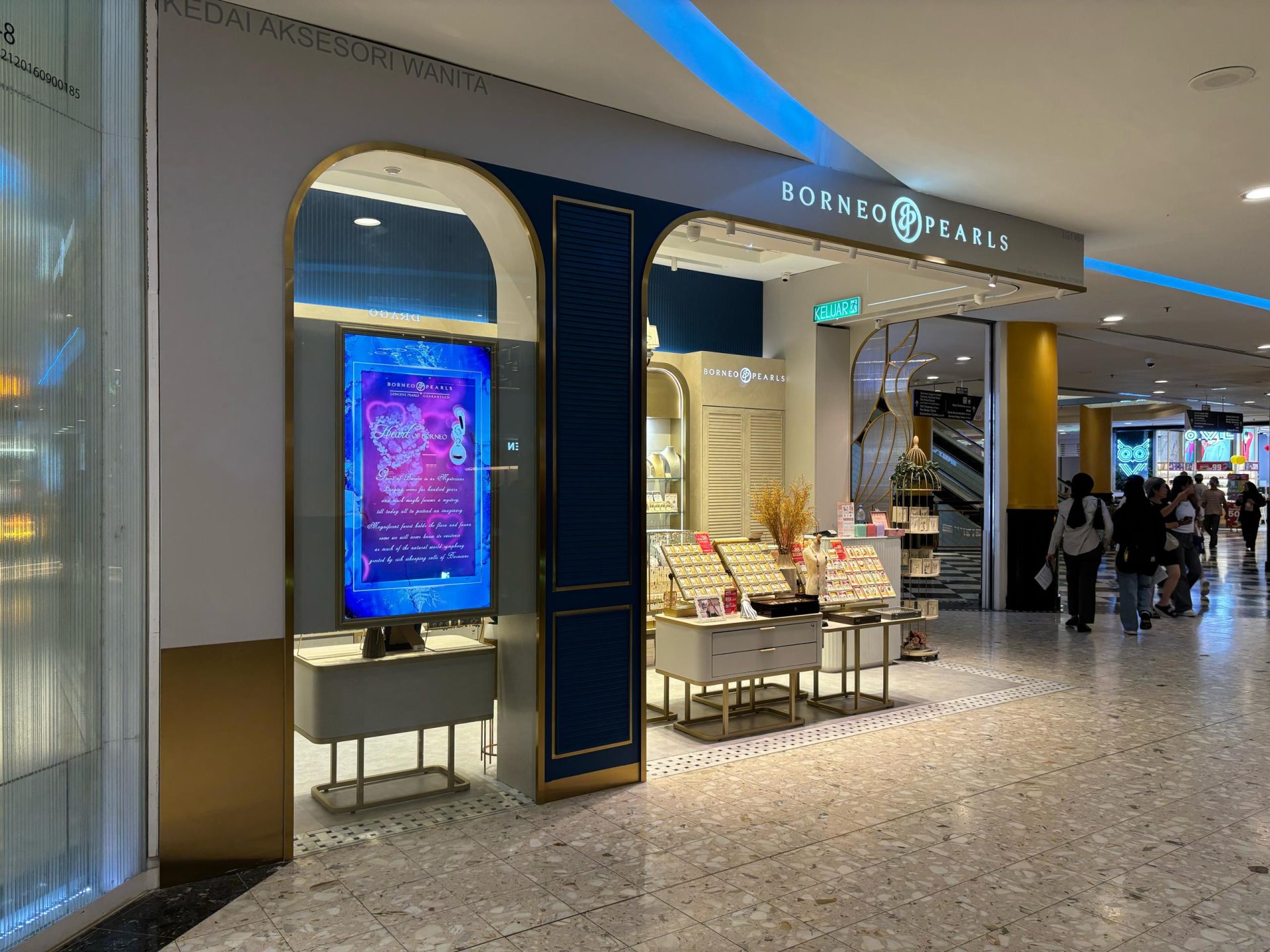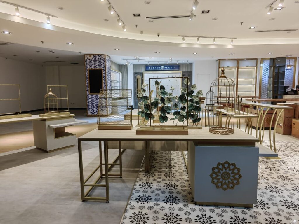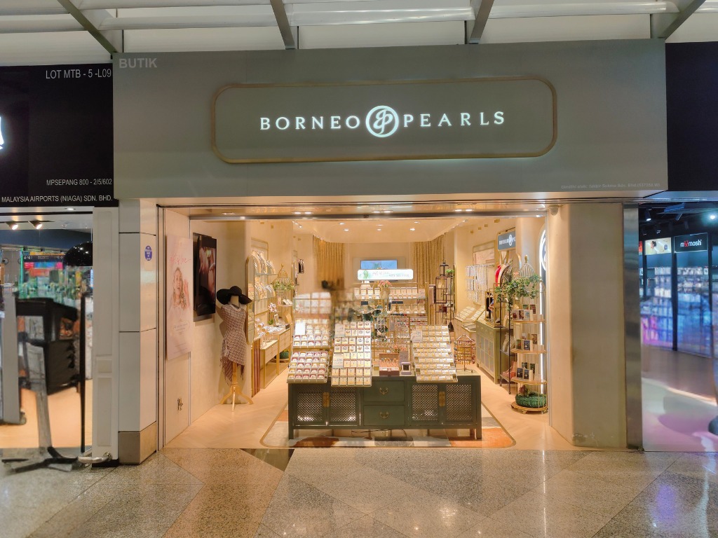 The Borneo Pearls Retail Store, located in the Main Terminal Building of KLIA, maximizes its small space with a modern classic design, creating an inviting and elegant atmosphere. Delicate motifs add a timeless touch of femininity, enhancing the overall sophistication of the space. Warm, strategically placed lighting highlights the beauty of each product, ensuring the displays are both eye-catching and functional. Despite its compact size, the store radiates luxury and comfort, providing a refined shopping experience for travelers passing through KLIA.