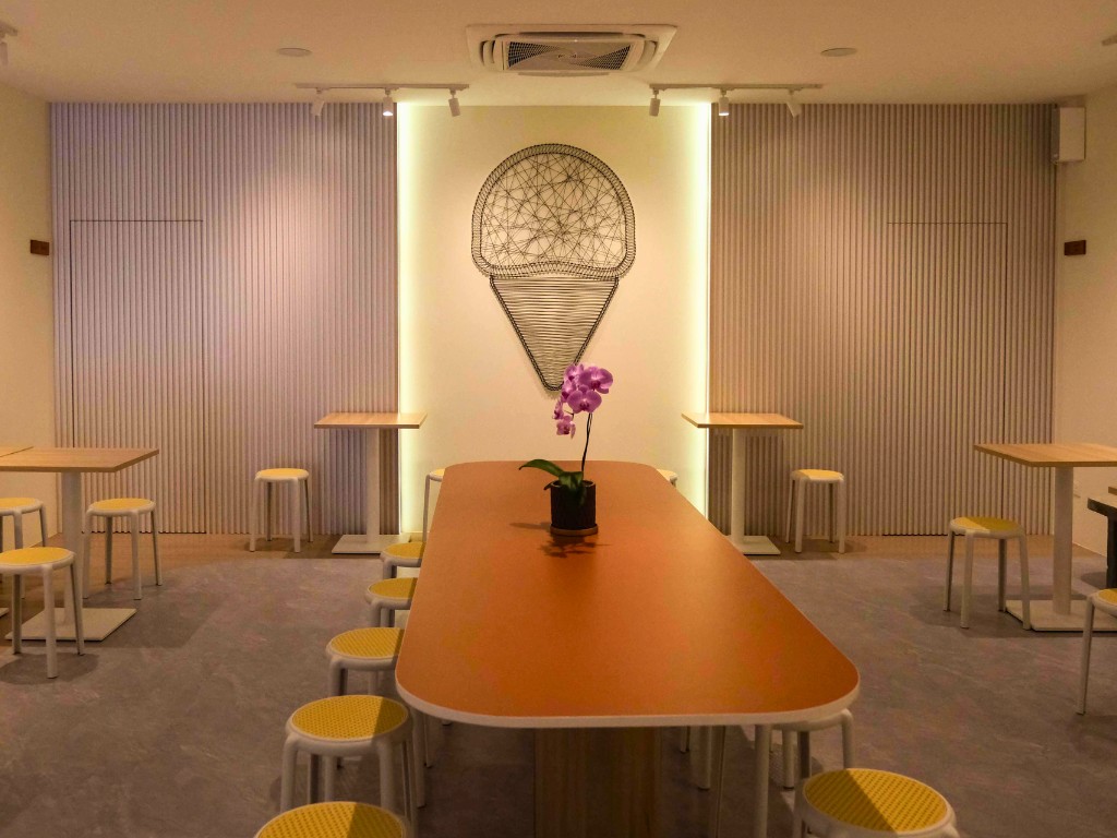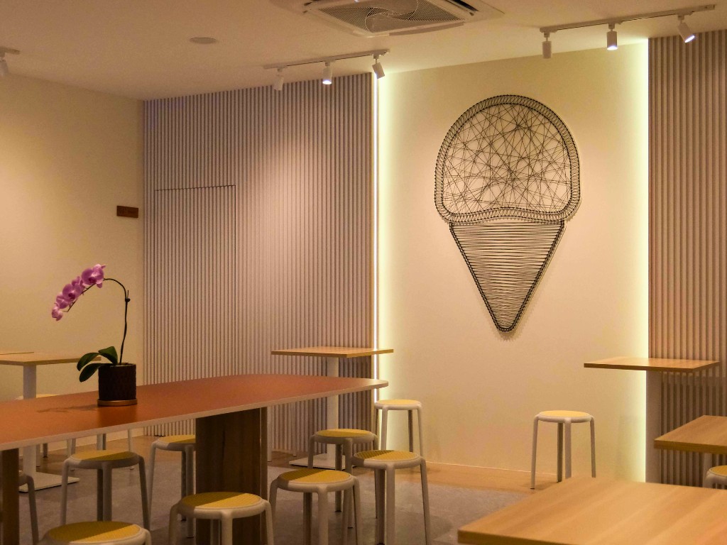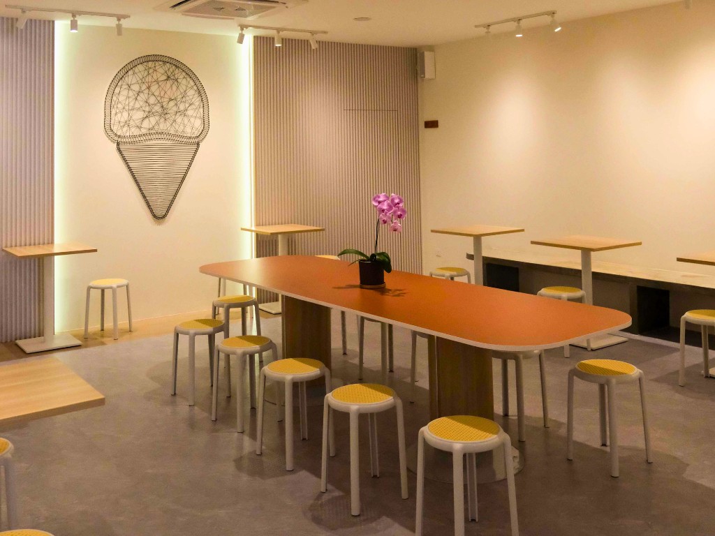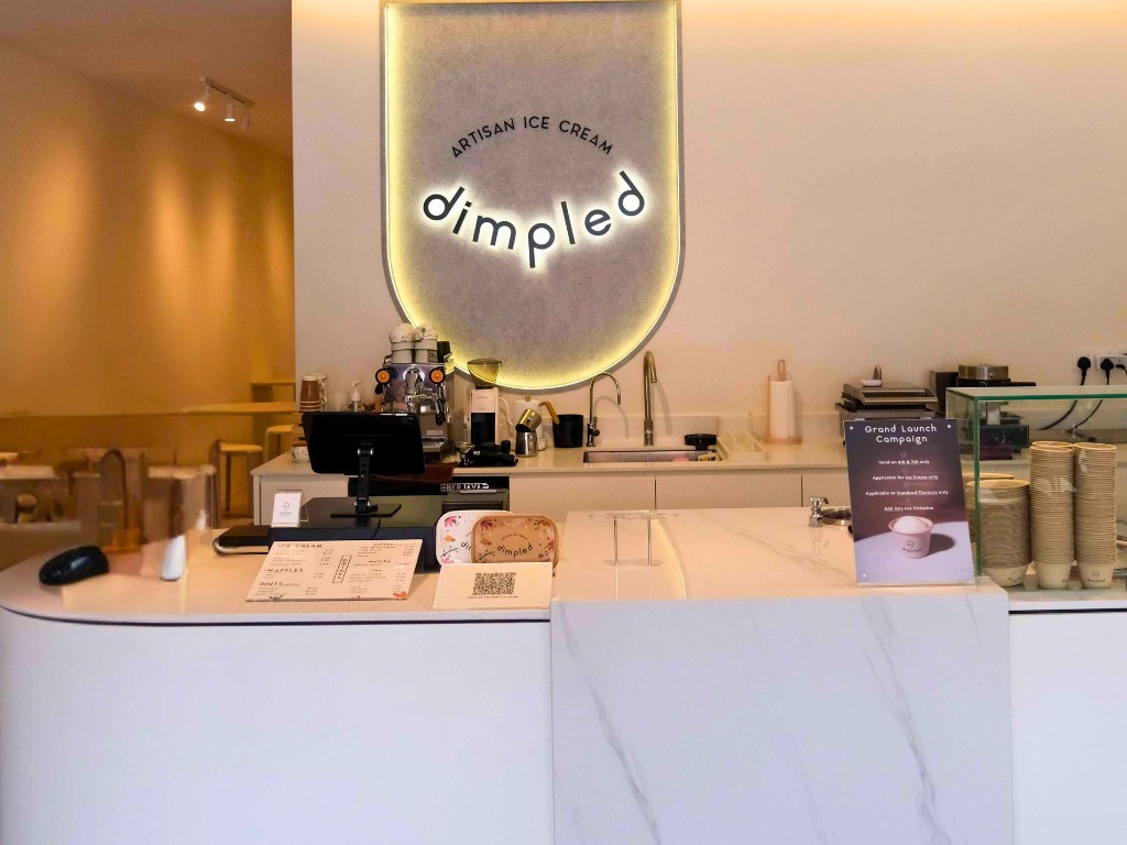 Dimpled Artisan Ice Cream embraces a minimalist design with earthy tones, creating a warm and inviting atmosphere that reflects the brand’s artisanal craftsmanship. The clean lines and natural color palette allow the vibrant ice cream flavors to take center stage, offering a visually pleasing and calming environment. This thoughtfully curated space enhances the overall customer experience, blending simplicity and elegance to perfectly complement the handcrafted treats.